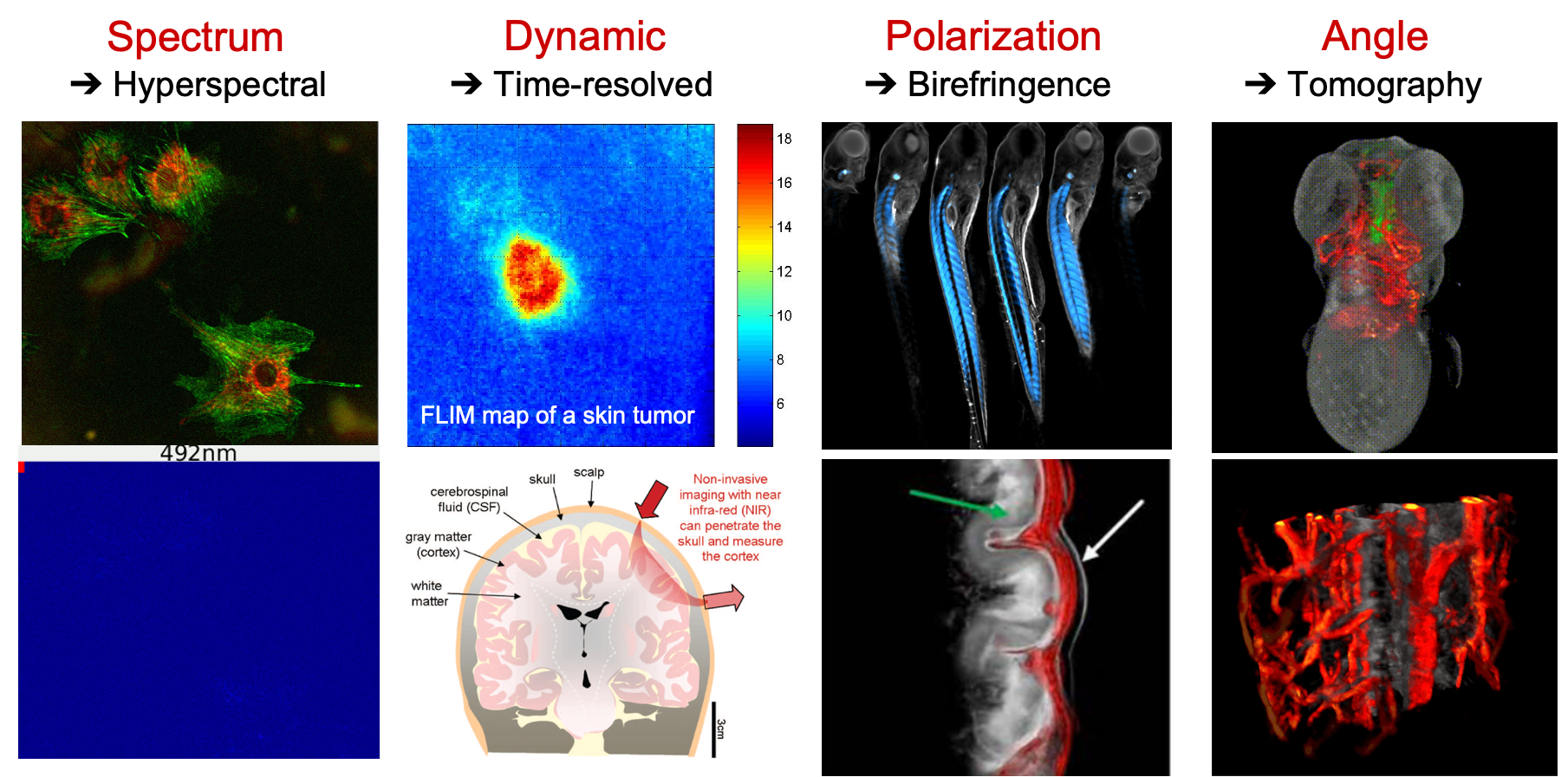 The possibility of detecting other dimensions like time and wavelength, together with space, dramatically improves the imaging and diagnostic power of biomedical devices.